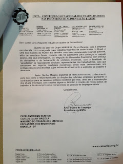 Ao fim da audiência, a CNTA aproveitou o encontro para entregar ao ministro, um ofício que denuncia as más condições de trabalho no setor frigorífico e práticas abusivas das empresas Marfrig e JBS Friboi no Rio Grande do Sul (RS). De acordo com a confederação, os dois maiores grupos do ramo da indústria de alimentos não demonstram responsabilidade social em contra partida do recebimento de investimentos de recursos públicos, por meio do Banco Nacional de Desenvolvimento (BNDES) e programas de incentivos fiscais locais.