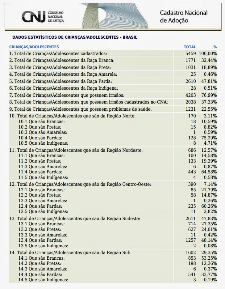 DADOS ATUAIS SOBRE ADOÇÃO (FONTE: CNJ)