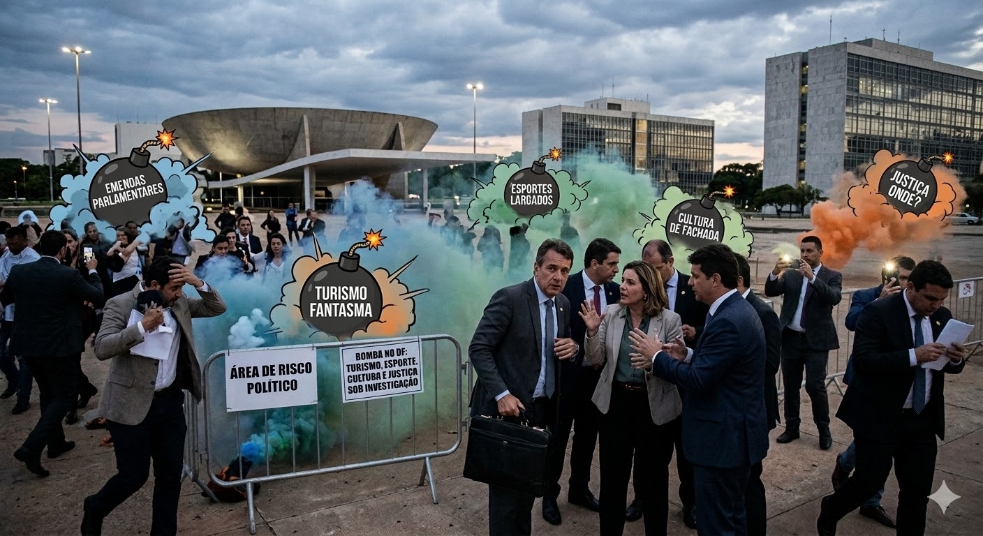 Dizem que o pavio curto dessa bomba foi aceso justamente no coração de quatro pastas que, ultimamente, viraram o parquinho de diversões de muito excelentíssimo: Turismo, Esporte, Cultura e Justiça.