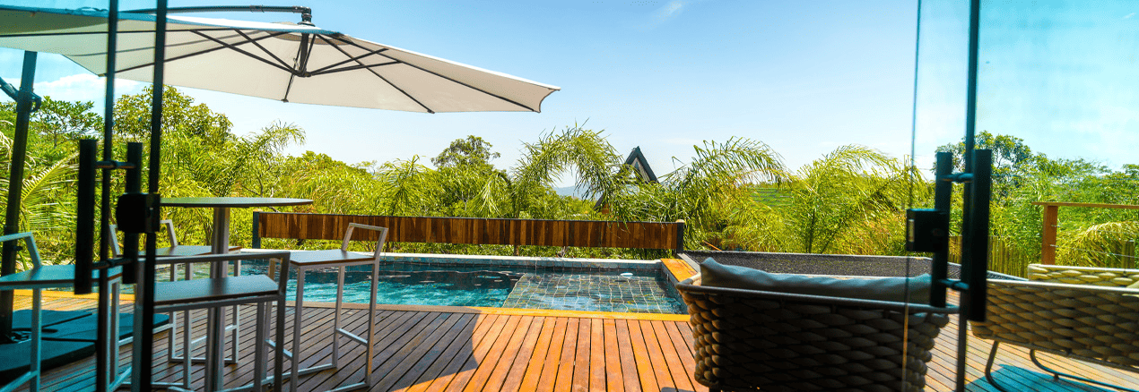Para quem busca o equilíbrio perfeito entre o mergulho no Cerrado e o conforto sofisticado, o Zamaya Bangalôs se revela um oásis. Acomodado em uma área privilegiada, ele captura a essência da tranquilidade da Chapada, oferecendo uma experiência de hospedagem que valoriza a vista e o bem-estar.